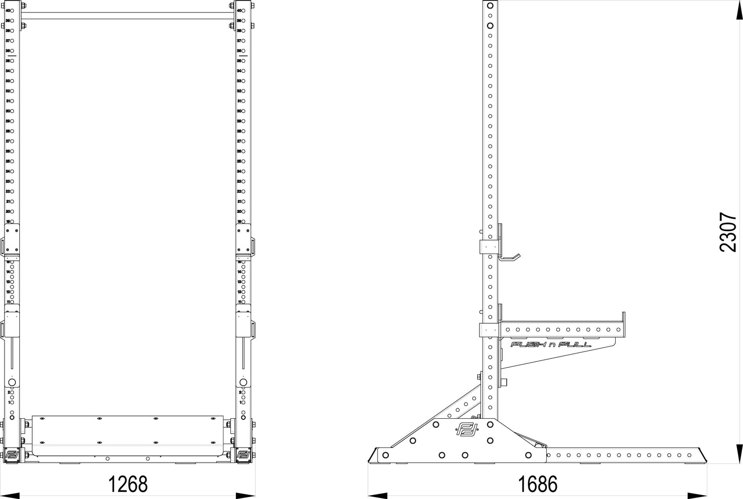 The Push n Pull Squat Rack stands for uncompromising stability – even with the heaviest loads. The robust construction ensures a secure footing, no matter how intense your workout is. Designed for maximum load capacity, it remains reliably stable even with heavy weights, so you can concentrate fully on your performance.
